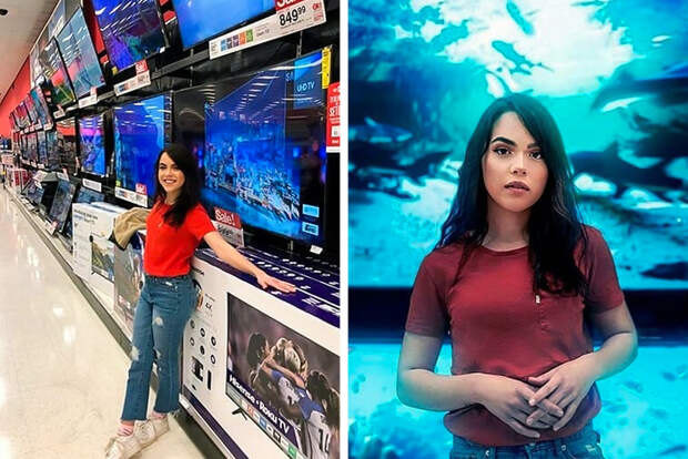 Фото на фоне телевизионной картинке и вот вы уже в океанариуме