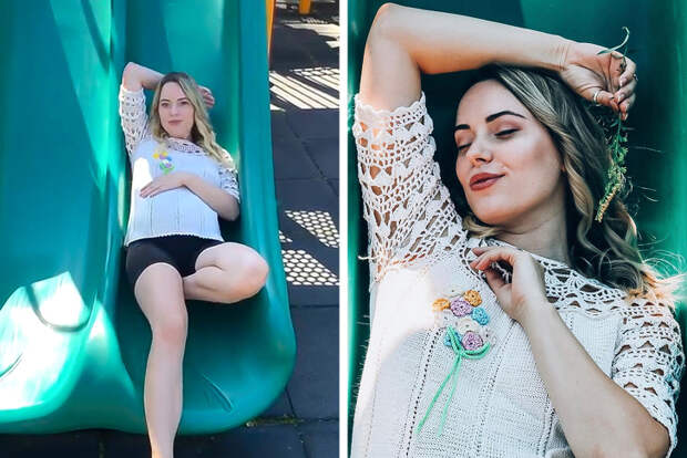 Отличным фоном может стать все что угодно, даже горка на детской площадке