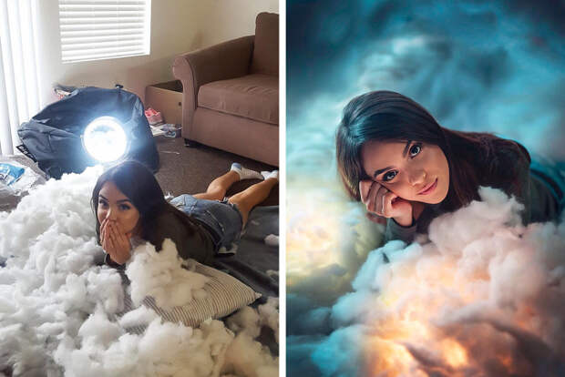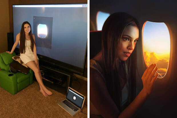 Получить удачную фотографию дело порой не легкое. Для этого потребуется десятки поз, ловкость рук и находчивость фотографа. Необязательно чтобы создать красивое фото садится на борт самолета, или бегать по джунглям. Порой самые эффектные фото скрывают обычную реальность.