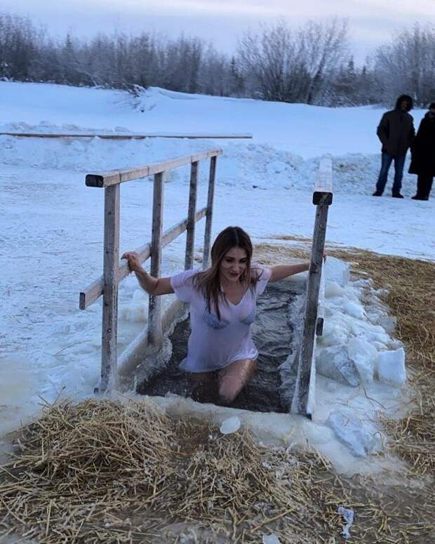 Кто-то приходит на прорубь из религиозных соображений, а кто-то просто хочет развлечься и нырнуть в ледяную воду. Давайте не будем рассуждать о религии и здоровье, а просто посмотрим на горячих девушек, пришедших искупаться в холодной воде.