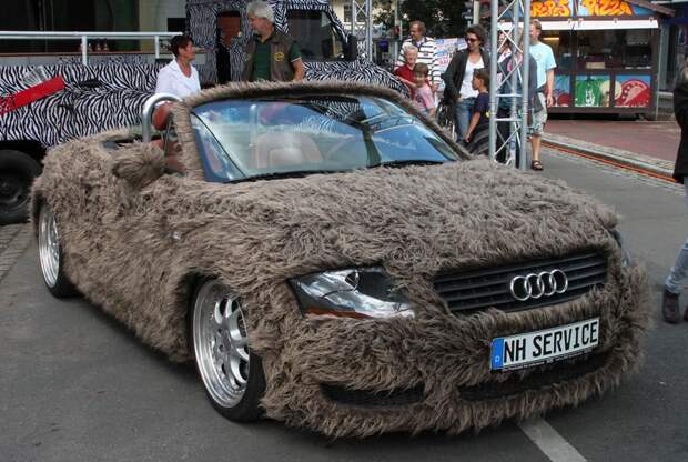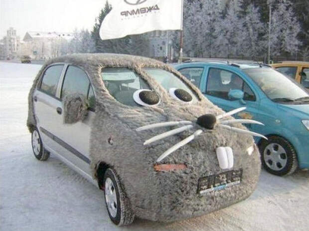 Чтобы вашей любимой машинке было не холодно зимой, её можно укрыть мехом.